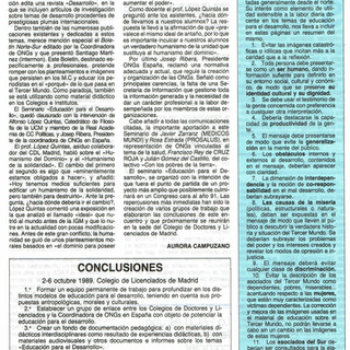 El Llamamiento de Madrid (1988) proclamado por la Conferencia Norte-Sur (en el ámbito de la cooperación internacional se llamaba Diálogo Norte-Sur, fue un acicate para mí y organicé en el Colegio de Doctores y Licenciados de Madrid -con la ayuda inestimable de la profesora Ana Muñiz del Colegio Loreto- el I Seminario de Educación para el Desarrollo, bajo el lema Educadores para un mundo solidario. De este modo abríamos un horizonte de innovación educativa entre docentes y Organizaciones No Gubernamentales para el Desarrollo (ONGD). Pedimos un mensaje de apoyo al Rey Juan Carlos I, quien tuvo la cortesía de enviarlo para animar al profesorado en la ardua tarea de la cooperación con los pueblos subdesarrollados. El Seminario fue un éxito inesperado -gracias también al buen hacer del secretario del CDL, Roberto Salmerón, catedrático de Geografía e Historia del IES Carlos Bousoño de Majadahonda-, y se tuvo que celebrar en el salón de actos del Colegio Mayor Nuestra Señora del Pino en Madrid en el mes de octubre de 1989. Así impulsamos la ilusión y la esperanza en la educación para la paz y la solidaridad. El II Seminario de Educación para el Desarrollo, lo organicé con uno de los mejores especialistas de este ámbito pedagógico en España, mi entrañable amigo de esos años, Pedro Sáez Ortega, profesor de Geografía e Historia del Instituto de Bachillerato <Hortaleza> de Madrid. Yo era Director del Instituto (y profesor de Filosofía) del Instituto de Bachillerato Alcorcón VI.
